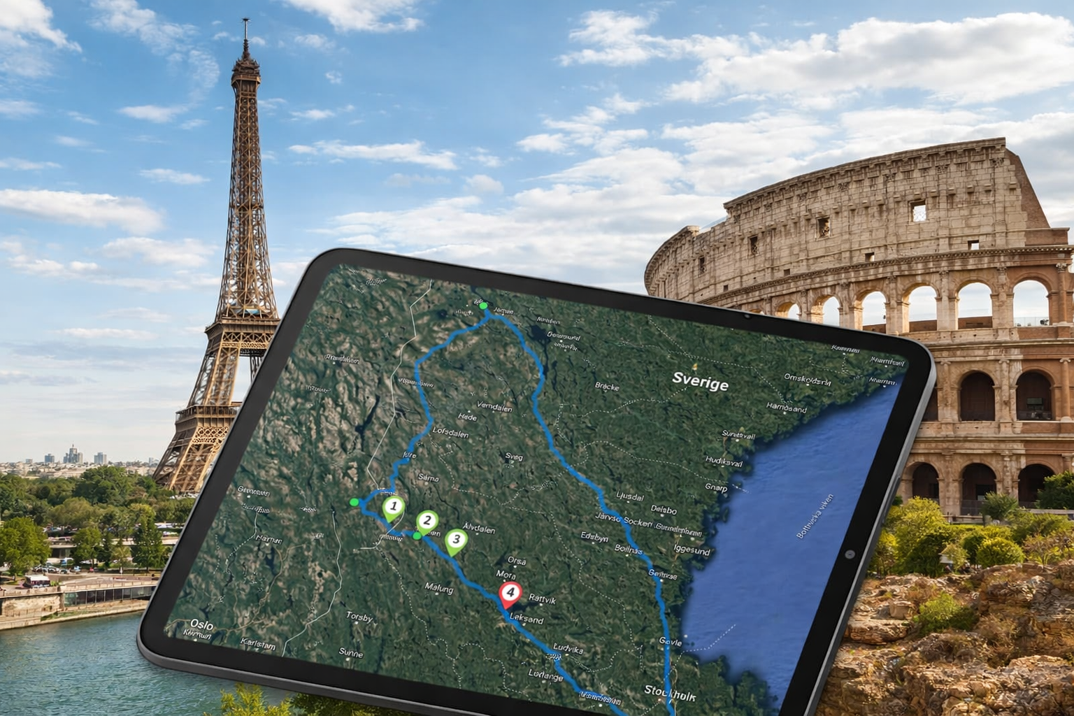 Längs vägen kan ni lägga in upp till 25 delmål, perfekt för rundslingor eller temaresor där ni återvänder till startpunkten. Varje delmål markeras på kartan och innehåller en informationsruta med: