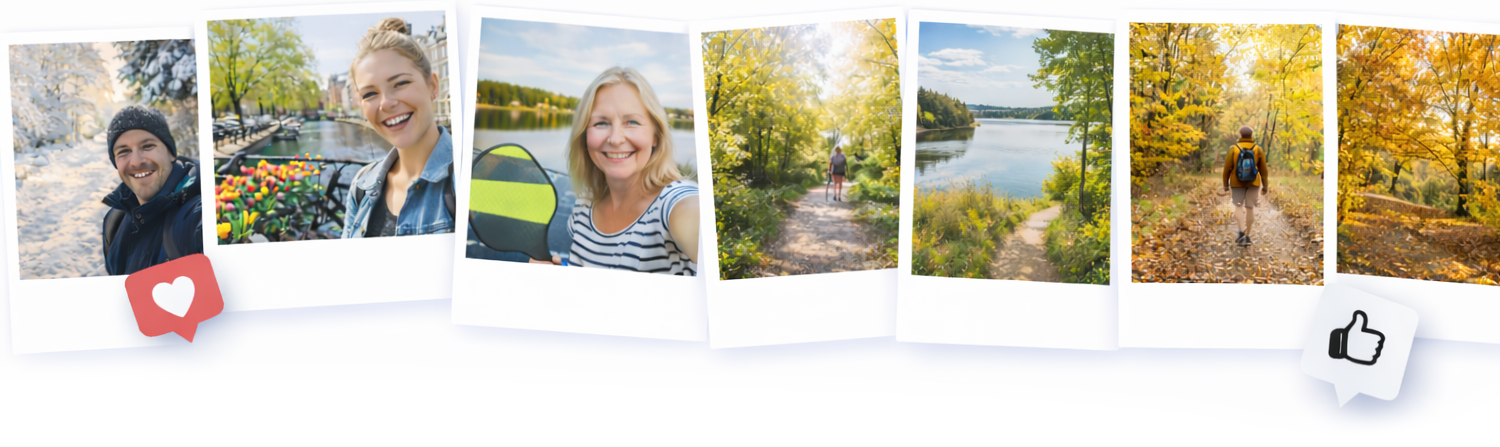 En av de mest uppskattade funktionerna i aktivitetsflödet är möjligheten att ladda upp bilder från sina aktiviteter. Det kan vara allt från en vinterpromenad i norra Sverige till en vårig lunchpromenad i Amsterdam.
