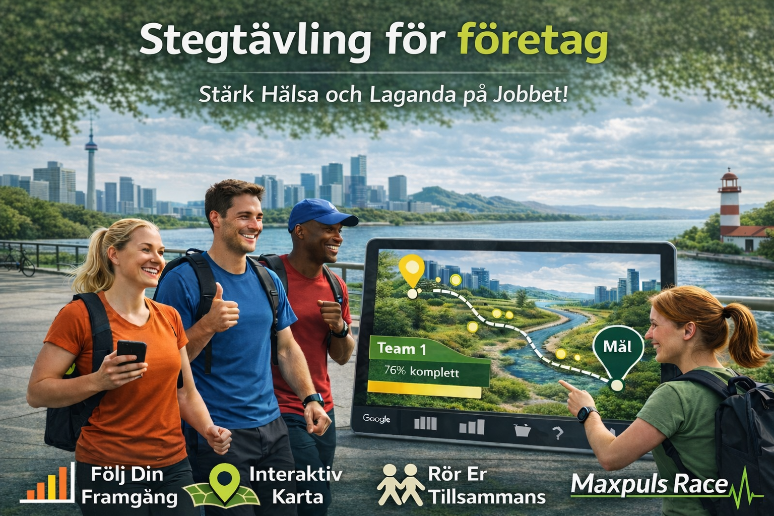En stegtävling för företag blir ännu mer engagerande när den visualiseras på en interaktiv karta. I Maxpuls Race omvandlas varje steg till faktisk förflyttning längs en gemensam rutt, vilket gör stegtävlingen tydlig, motiverande och lätt att följa för alla deltagare.